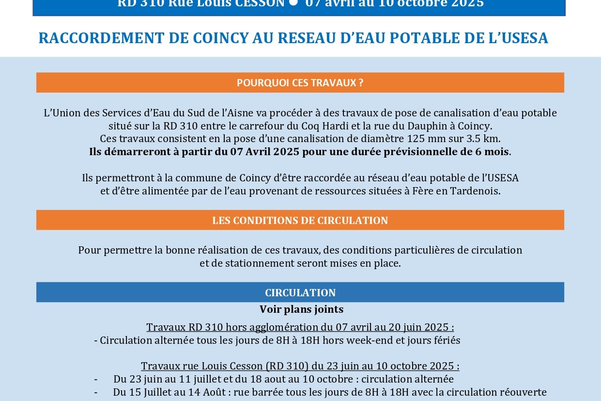 Raccordement de la commune de Coincy au réseau d’eau potable de l’USESA