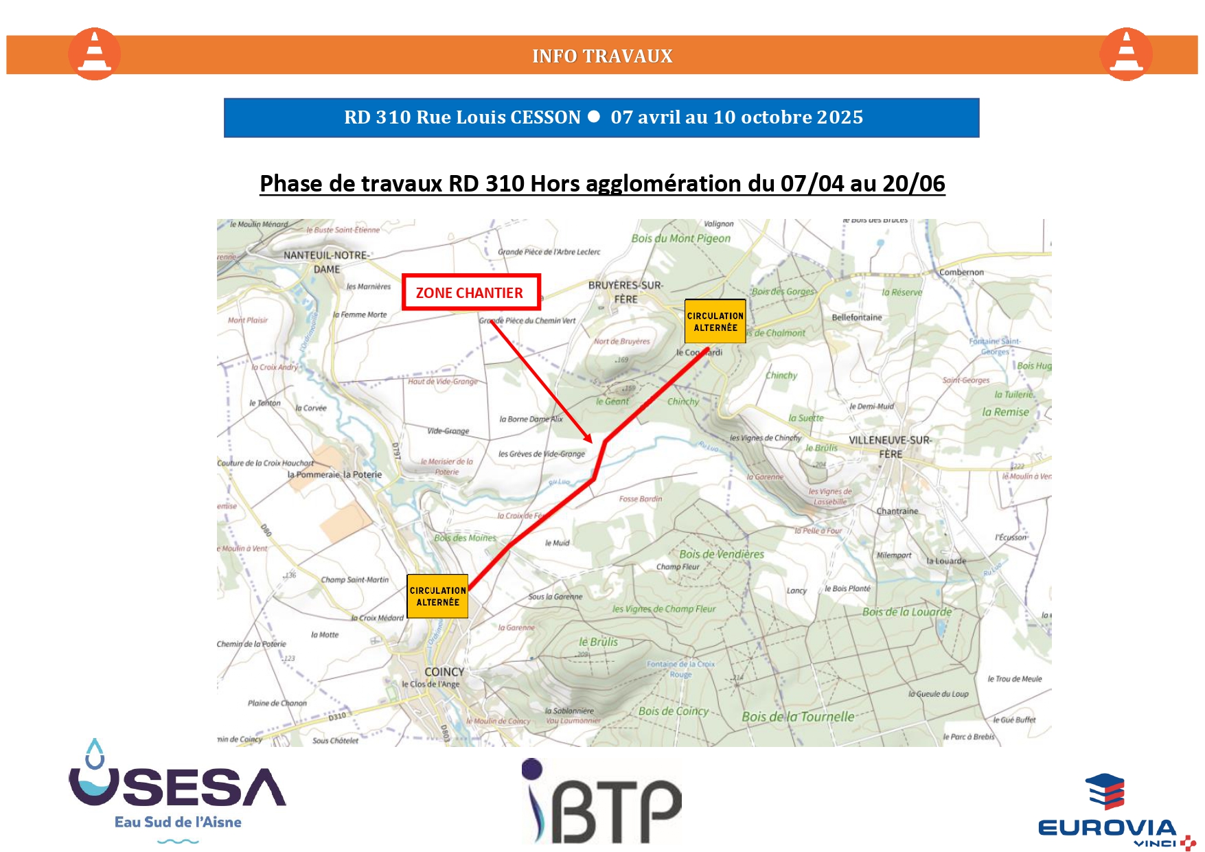 Travaux rue Louis Cesson (RD 310) du 23 juin au 10 octobre 2025 :