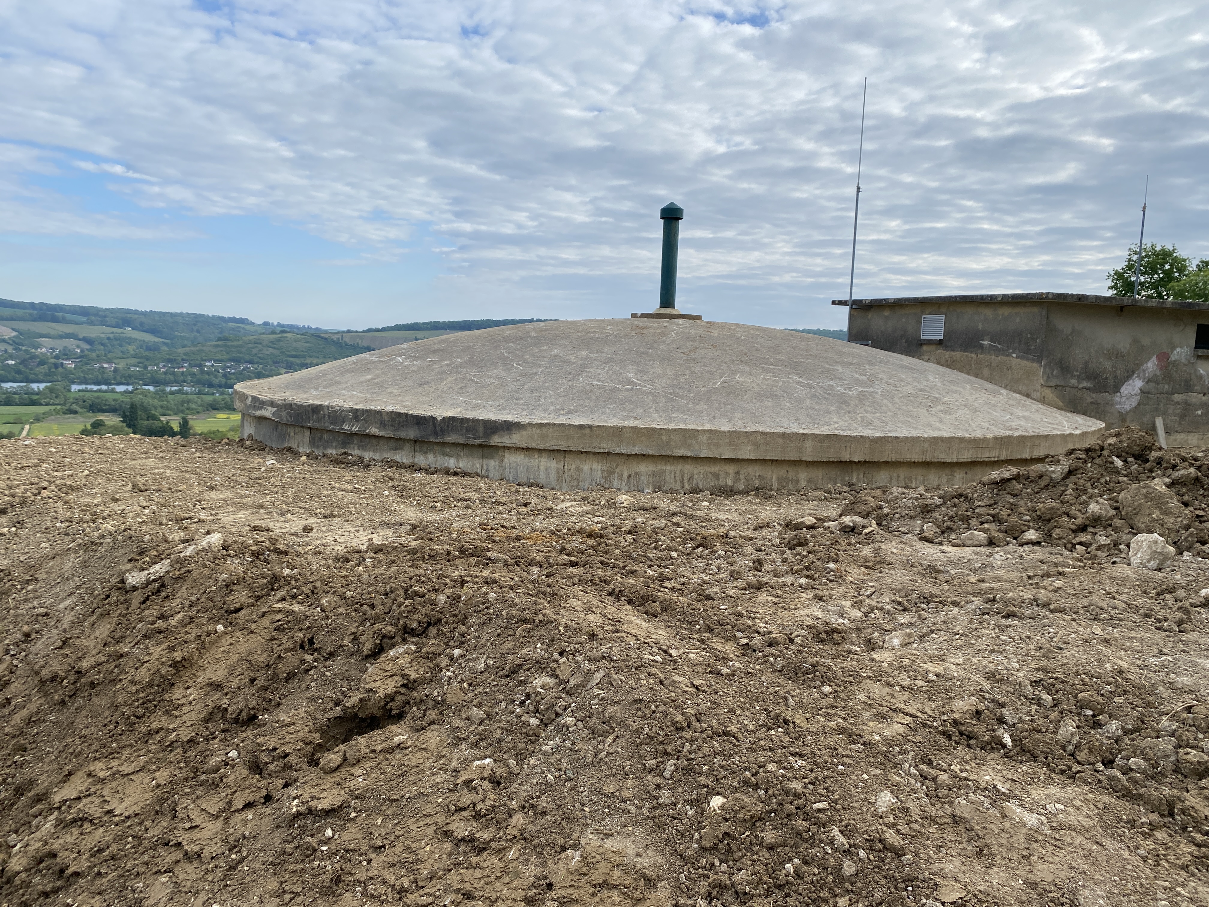 Réservoir de type semi-enterré composé de 2 cuves d’une capacité de 450 m3 chacune et construit dans les années 1960, le réservoir situé sur la commune de Courtemont-Varennes fait l’objet d’une réhabilitation.